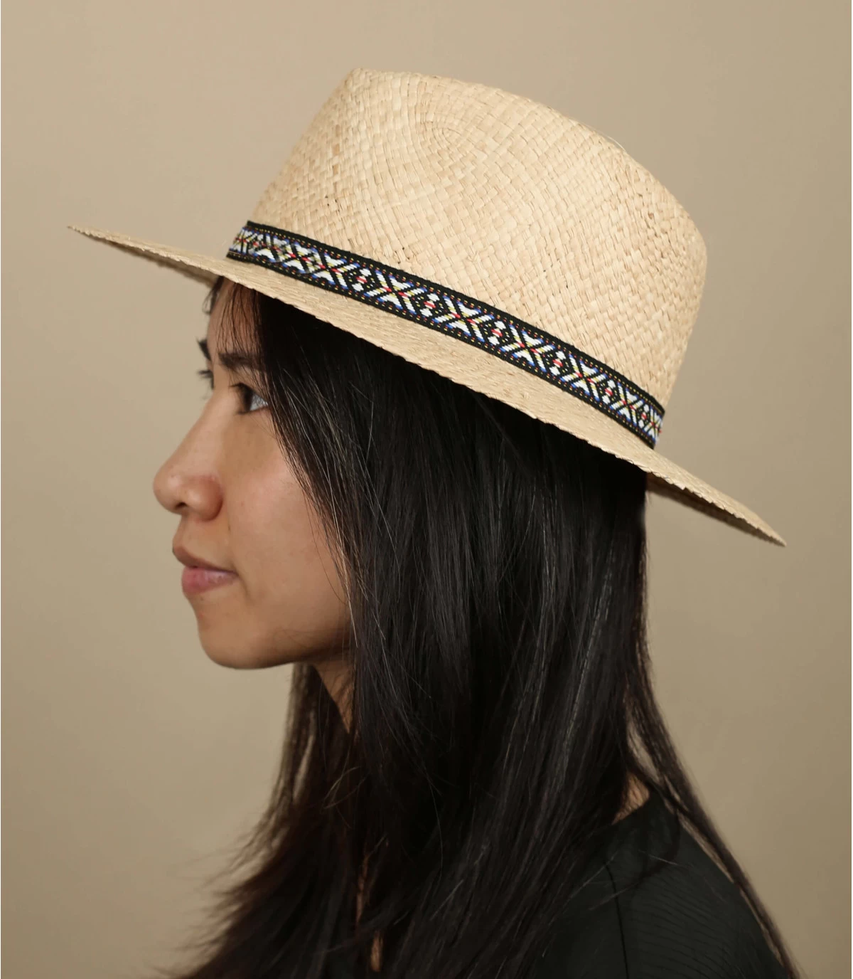 L’été, le fedora en paille est un classique intemporel qui vous donne du style en toute occasion. Ce modèle en paille de raphia est décoré d’une lanière avec un motif de losanges coloré. Ses bords larges vous protègent du soleil.