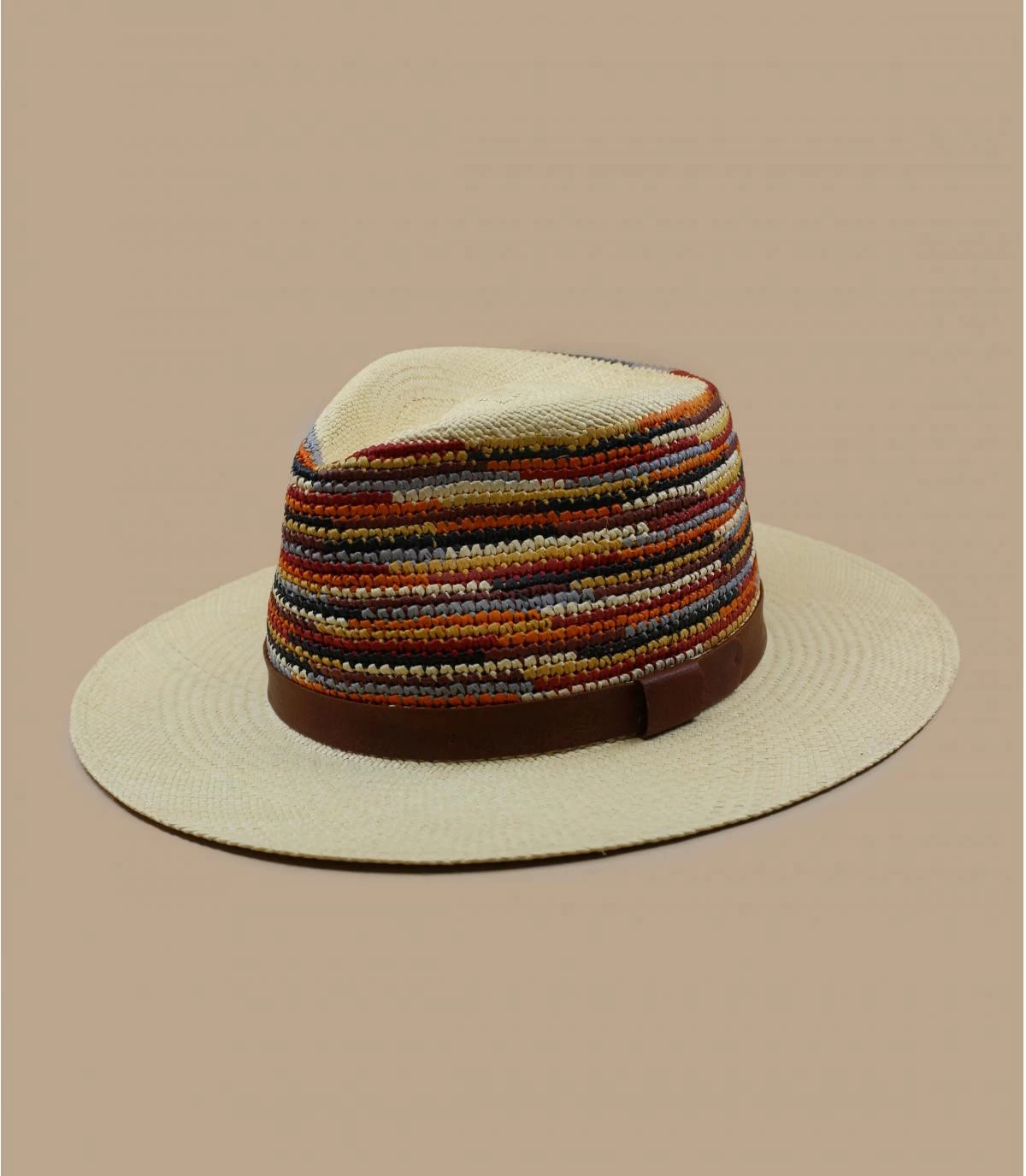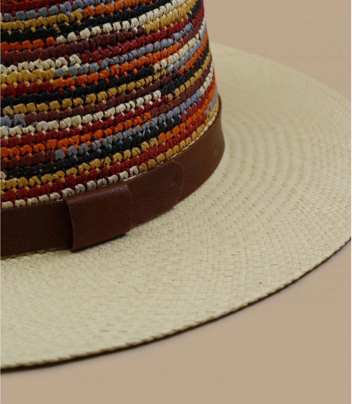 Offrez-vous une véritable création unique, avec ce magnifique chapeau confectionné en authentique paille panama par le spécialiste Bailey of Hollywood. Le tressage multicolore de sa calotte est une œuvre d’art et son bord droit lui donne un port original.