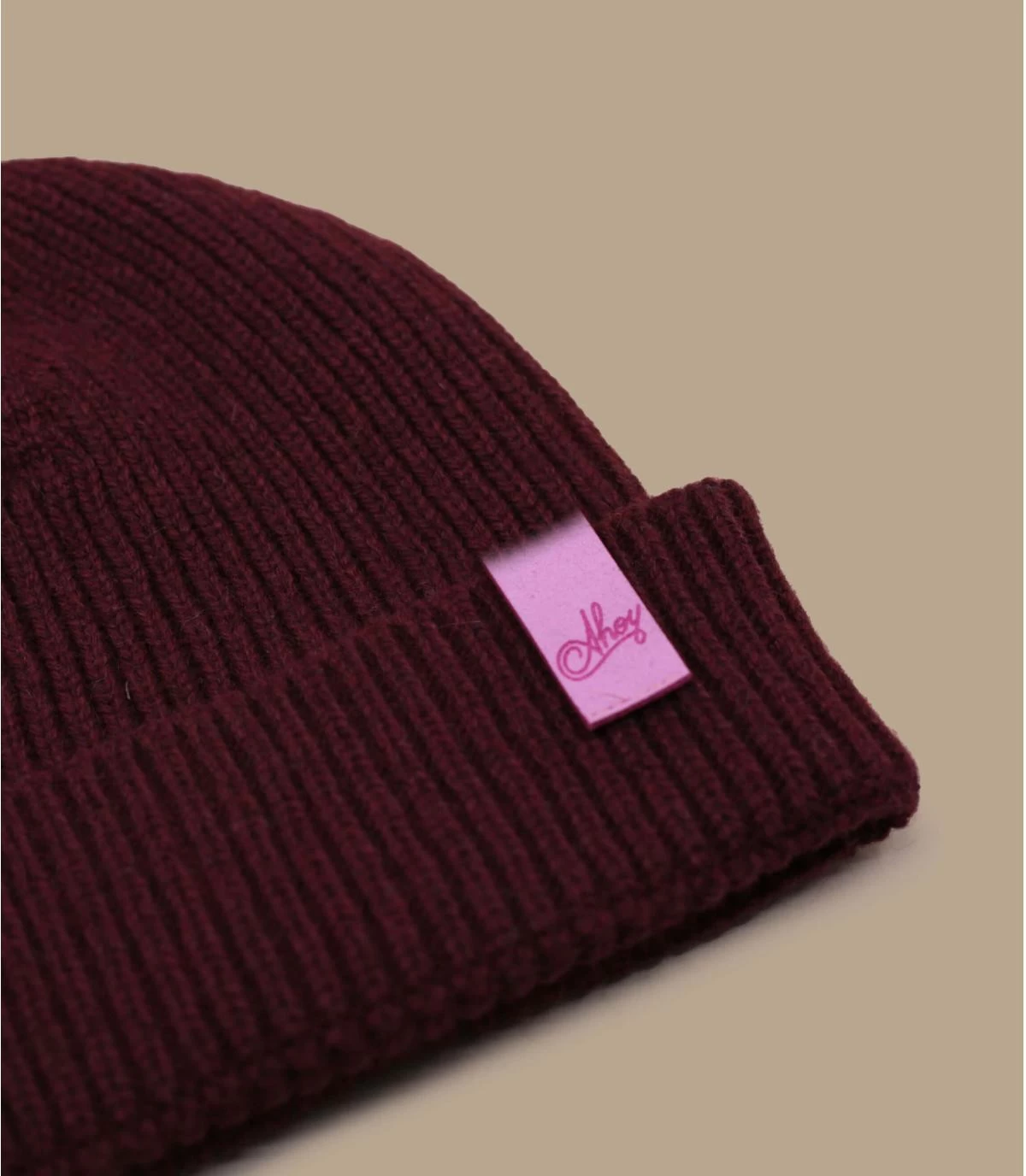 Bonnet en laine fabriqué en France dans la région Rhone Alpes et personnalisé dans notre Atelier d’Annecy, à partir de matières recyclées. Ahoy gravé sur patch rose.
