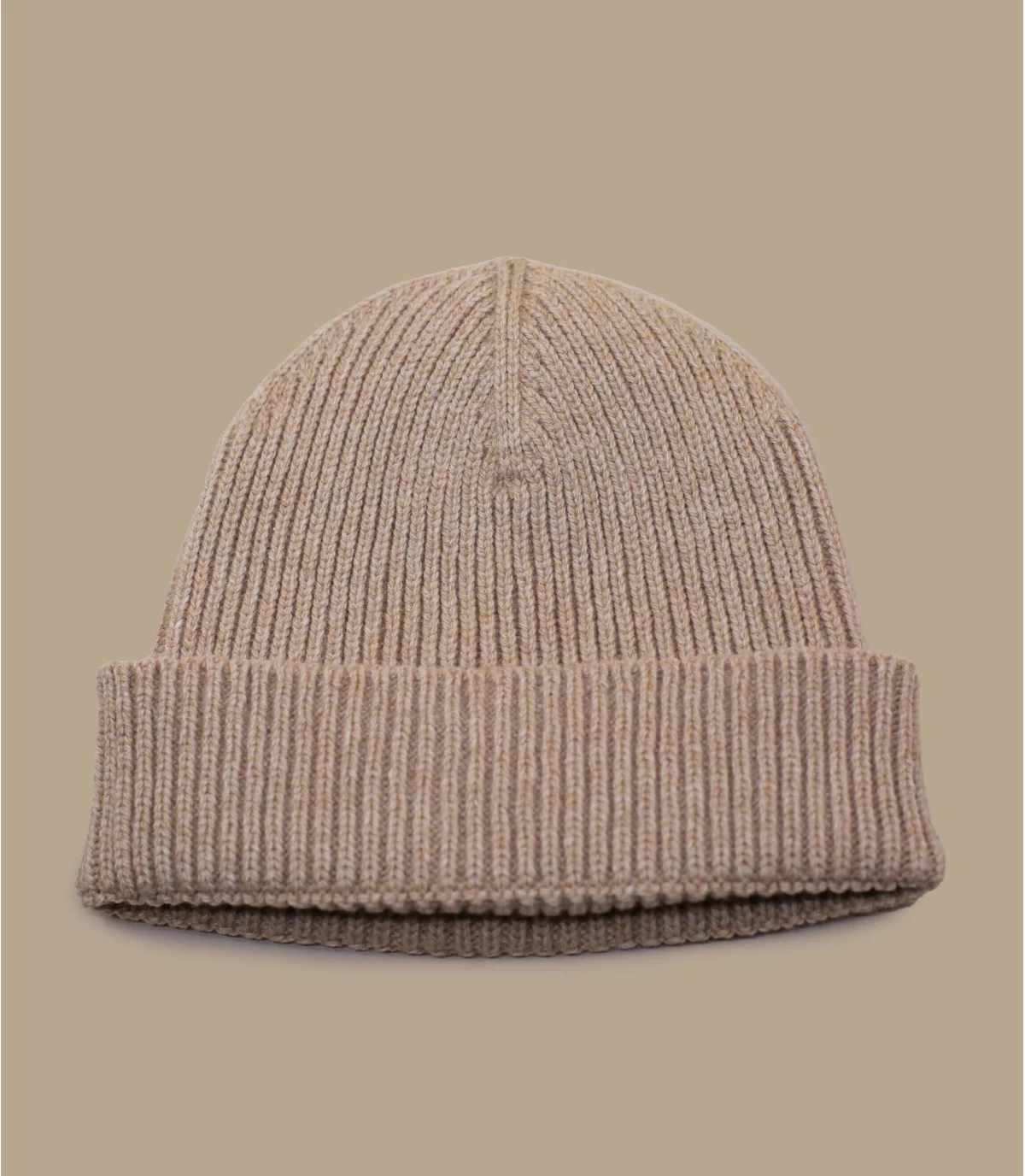 Bonnet en laine recyclée fabriqué en France de couleur camel. Taille unique : 55-60 cm de tour dre tête.