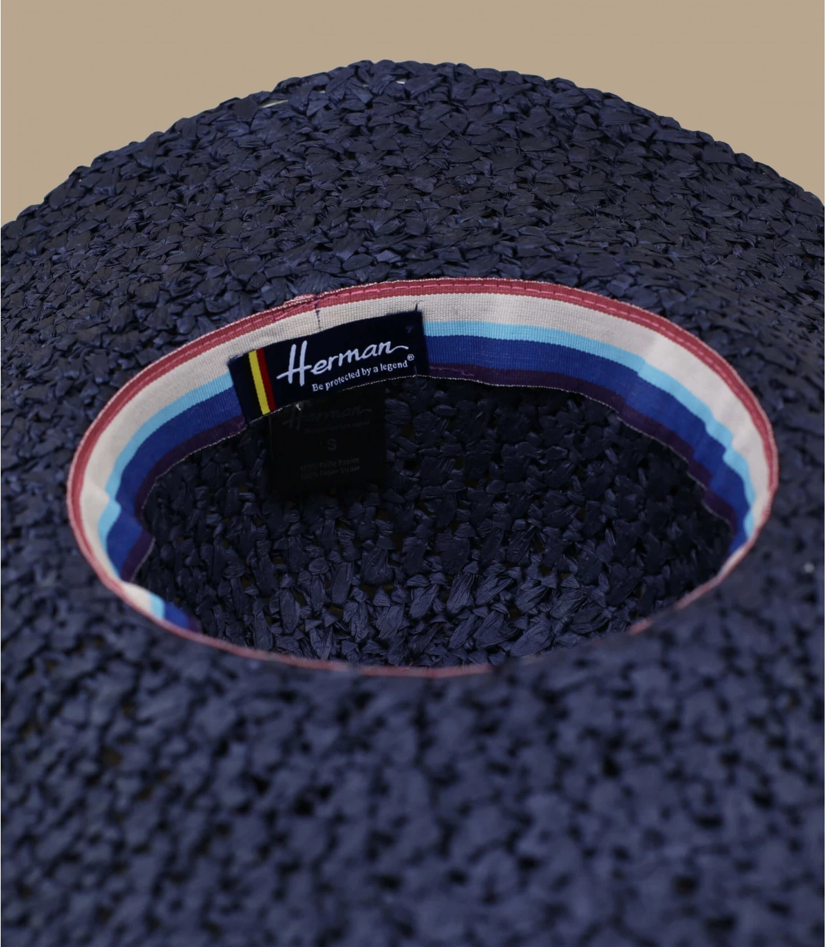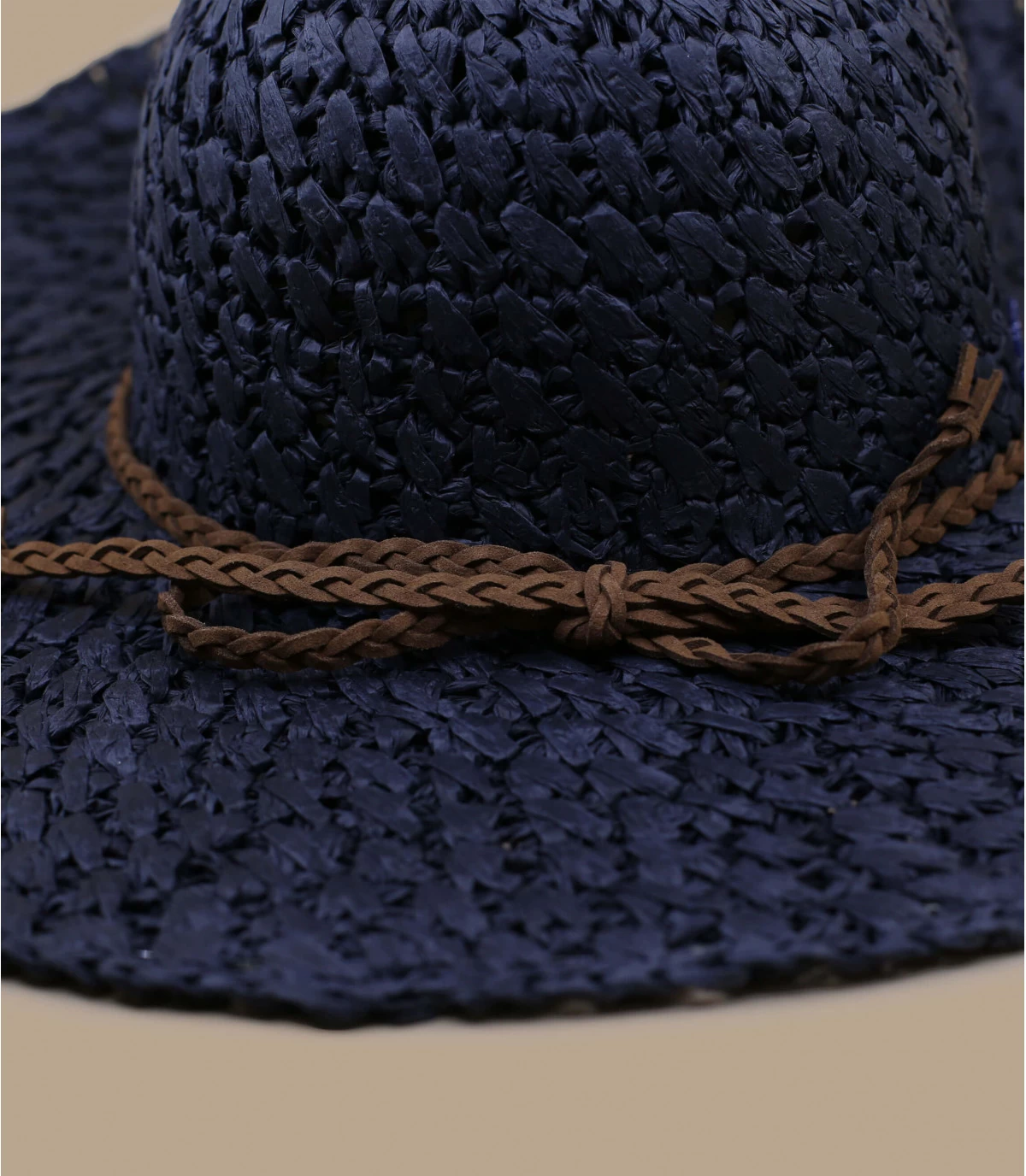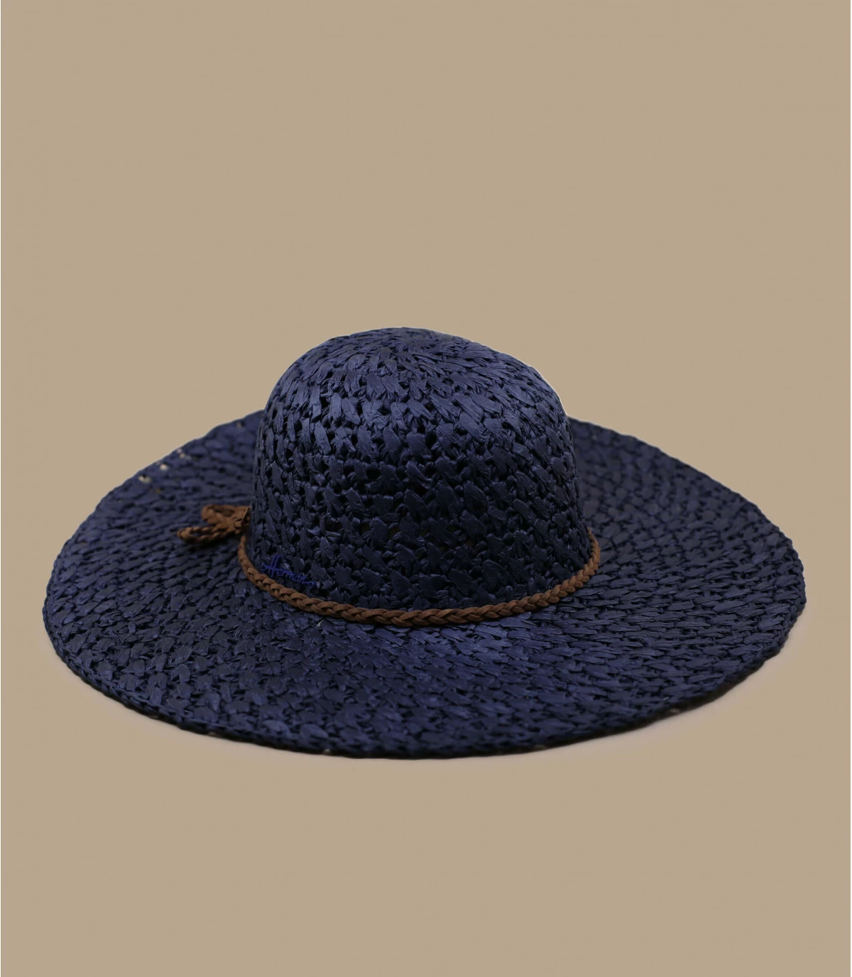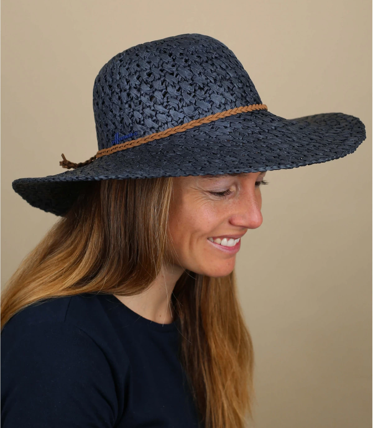 Cet été, ce chapeau de paille bleu marine pour femme en paille de papier fera fureur sur la plage ! De grosses mailles dans son motif lui donne un côté brut et la fine lanière en cuir et son nœud apporte une touche glamour.