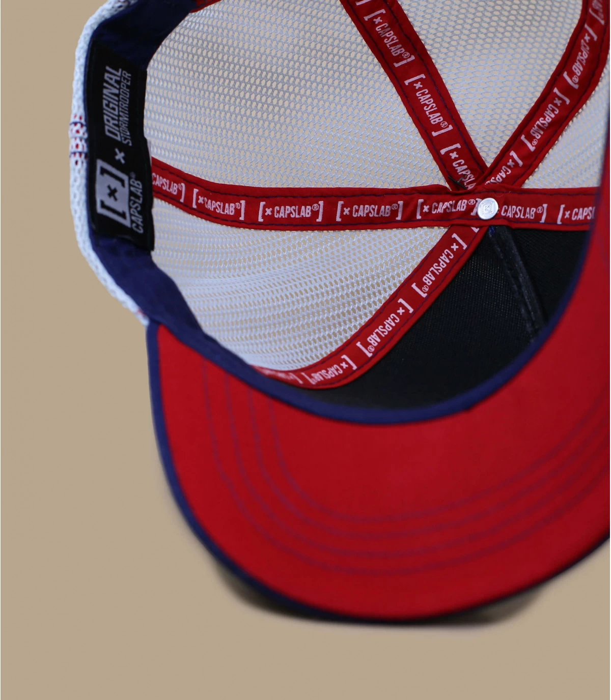 Cette magnifique casquette trucker bleue est relevée d’un patch affichant un soldat impérial Stormtrooper. Elle est complétée de détails soignés, comme un petit patch sur le côté et un dessous de visière rouge.
