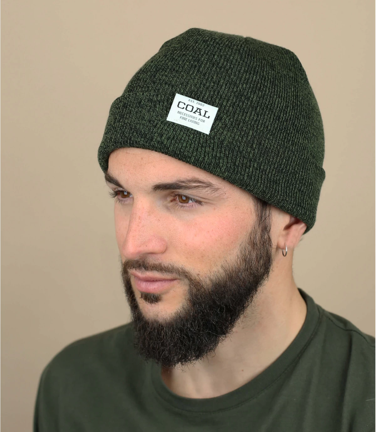 Portez ce superbe bonnet gris chiné de la marque spécialisée Coal en version courte à revers, ou changez de style en le dépliant pour le porter dans sa version longue. L’étiquette en cuir suédé à cheval sur le bord laisse apparaitre son logo gravé dans les deux cas.