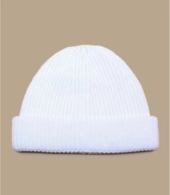 Bonnet docker de couleur blanc couvrant uniquement le haut des oreilles. Matière mi polyester recyclé mi acrylique. Taille unique : 55-60 cm de tour de tête.