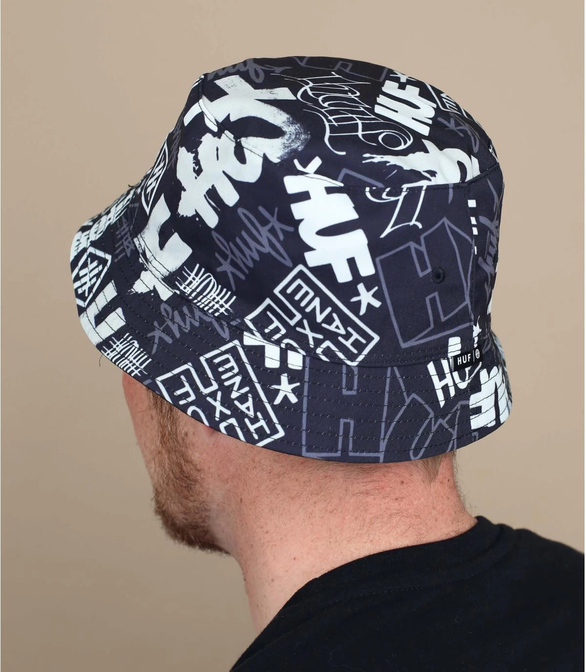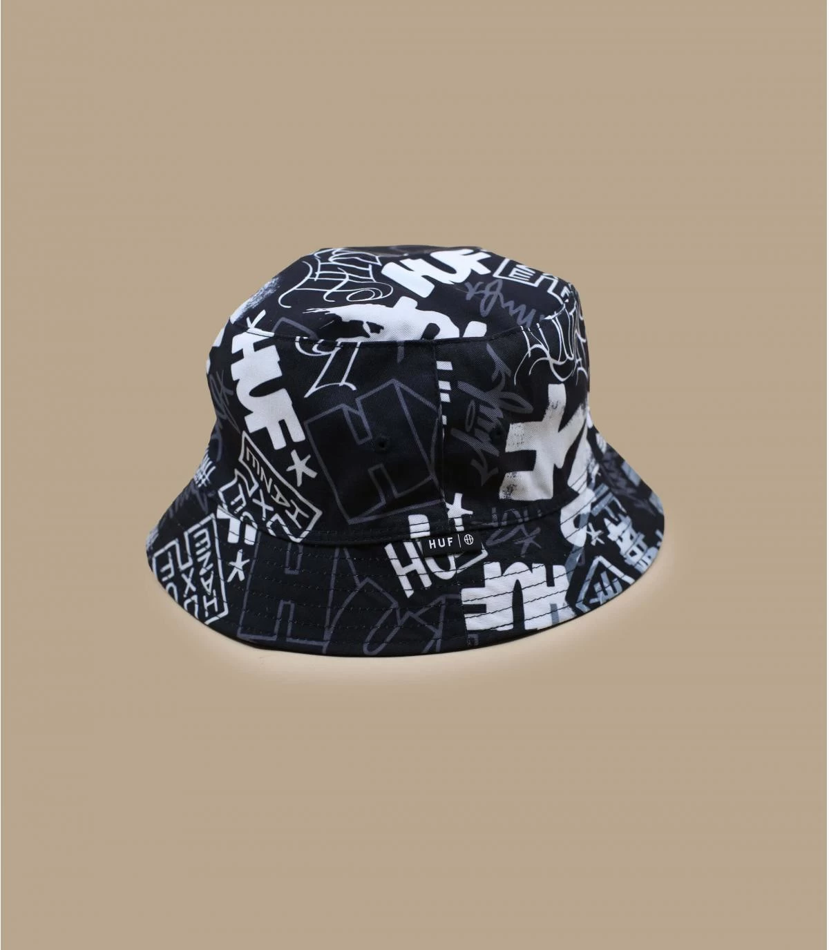 Adoptez le style idéal pour survivre dans la jungle urbaine, avec ce bob souple en toile noire de la marque de skateboard Huf, relevé d’un imprimé mêlant divers logos. Discret et tendance, il est parfait pour se protéger du soleil sur le bitume.