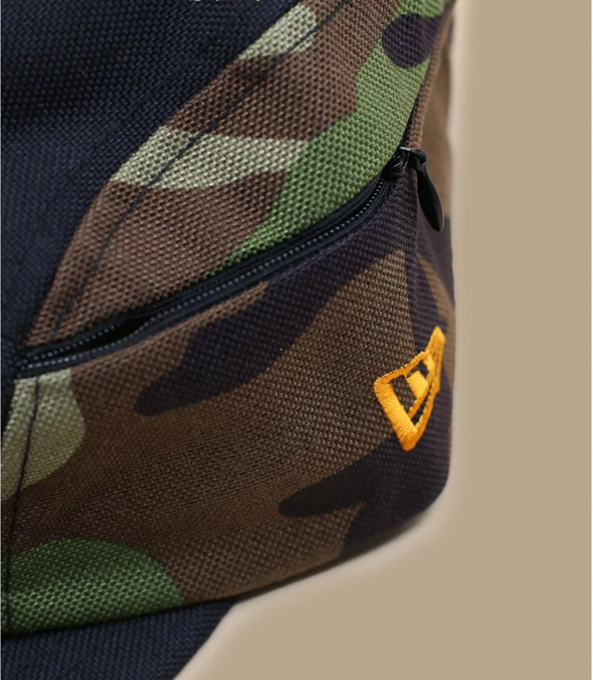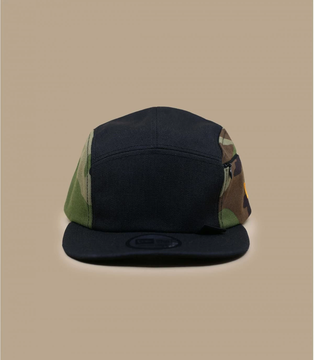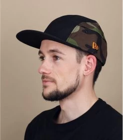 Adoptez une allure pointue, avec cette casquette 5 panel d’un noir discret, relevée d’empiècements à imprimé camo sur les côtés. Idéale pour donner un côté edgy à une tenue décontractée, elle nous est proposée par la marque spécialisée New Era.