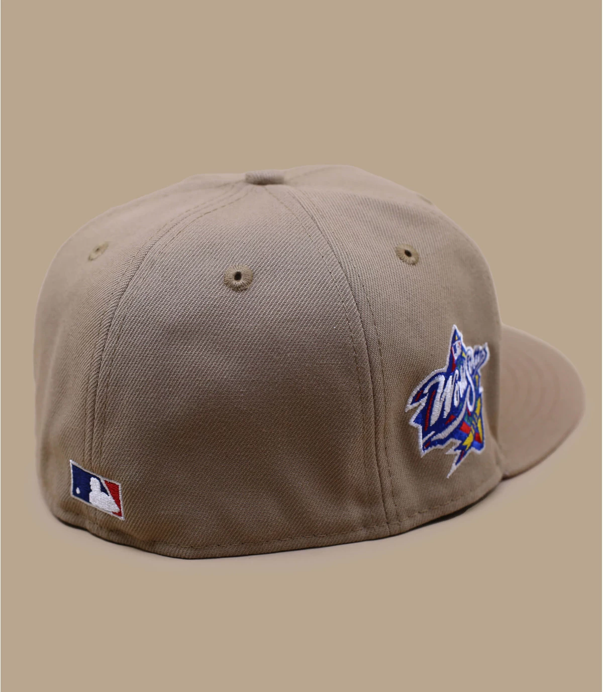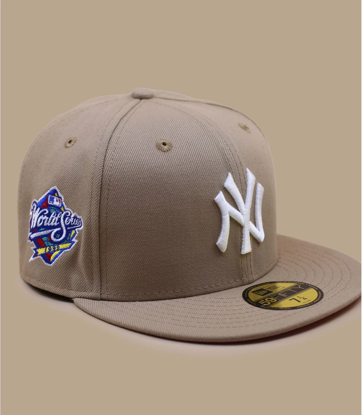 Les initiales de l’équipe la plus célèbre équipe de baseball américain et de la ville mythique sont brodées en blanc à l’avant de ce modèle fitted. Son coloris camel est très agréable, et le dessous de la visière est rose pâle.