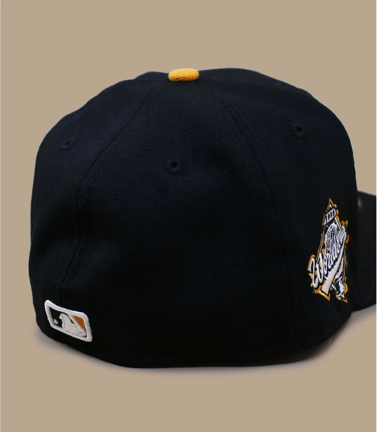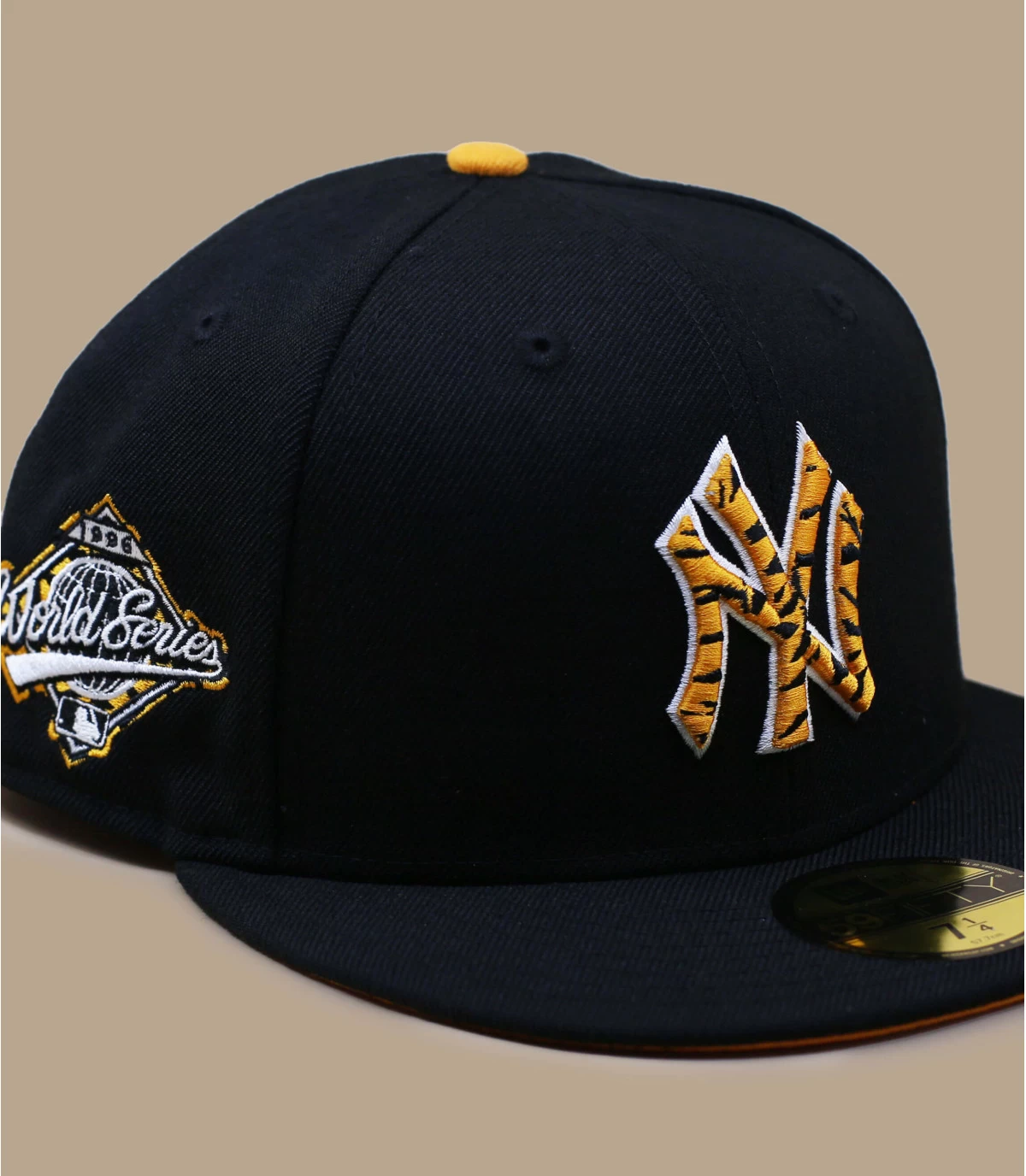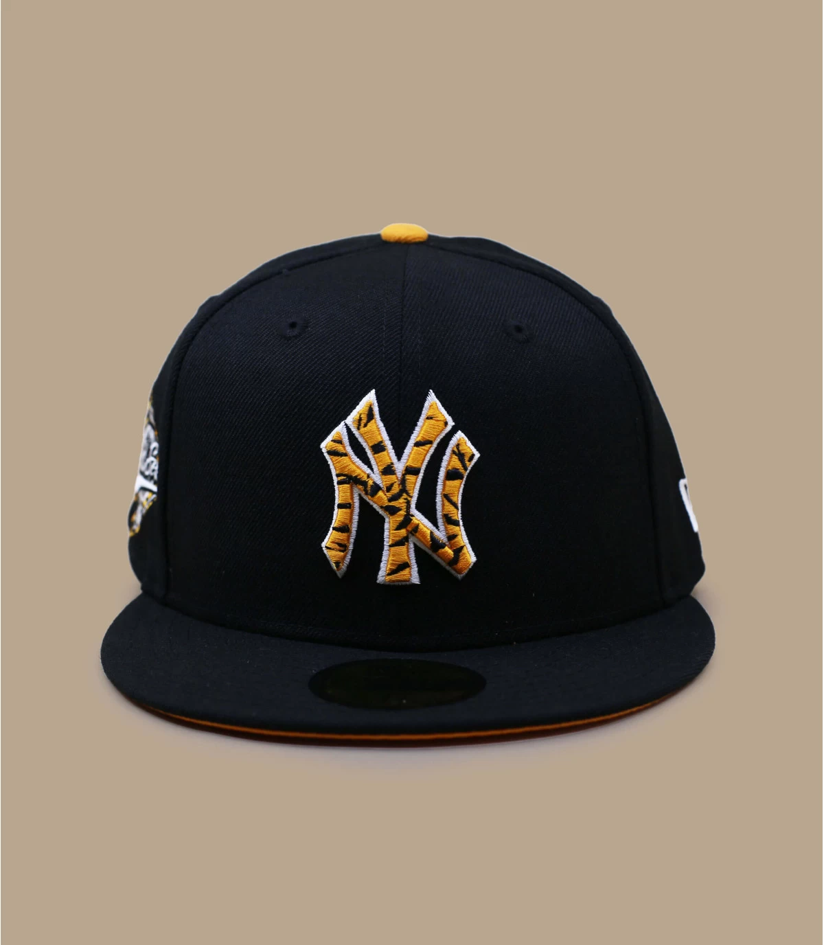 Cette casquette noire cache bien son jeu. Elle porte les initiales New York à l’avant avec un effet tigre original orange. Le dessous de la visière est orange. Sur le côté sont visibles le logo et le drapeau New Era.