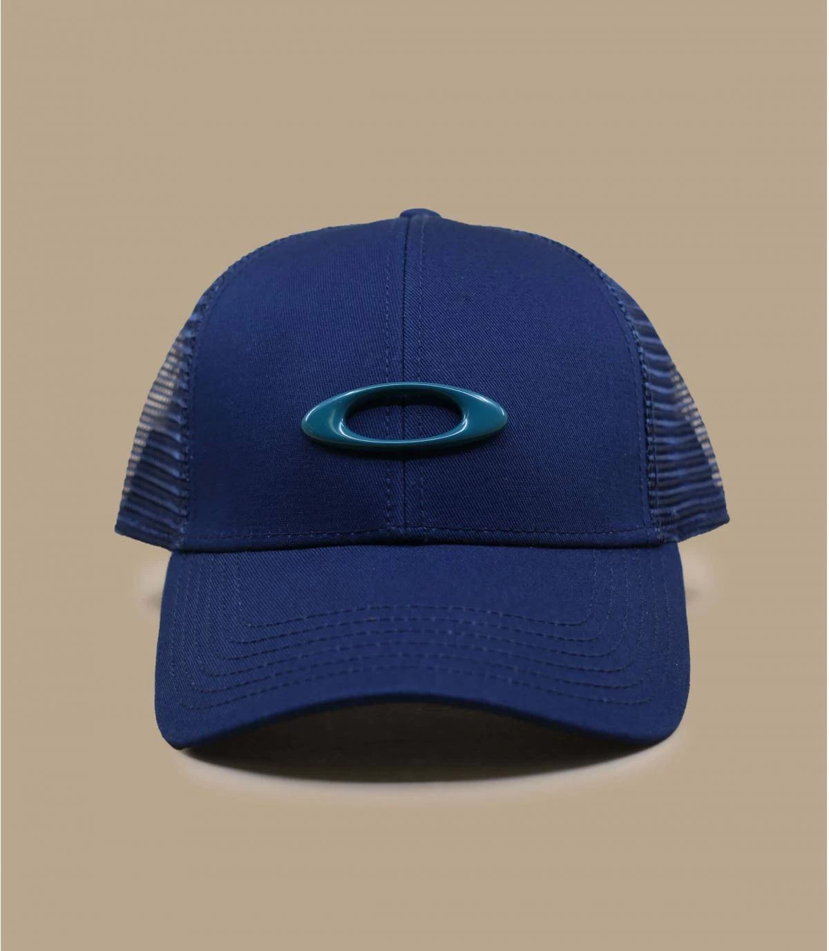 Superbe casquette trucker Oakley au style classique, de couleur bleu marine et relevée d’un logo bleu vert en relief sur l’avant. S’ajuste au dos par système snapback.