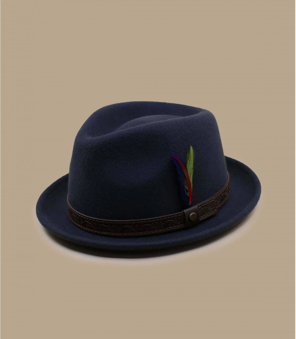Relevé d’une bande de cuir et d’un plumet coloré, ce chapeau pork pie gris de la marque Stetson est en feutre de laine souple, vous pouvez le rouler pour l’emporter en voyage.